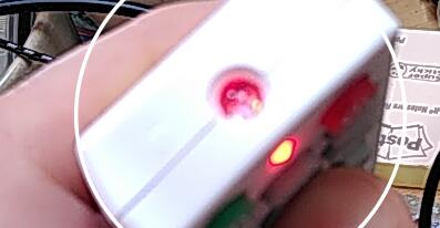 Ensuite, il faut essayer une télécommande. Pour vérifier si celle-ci fonctionne, il est possible d’utiliser la caméra d’un téléphone, comme dans la figure 29.1. La caméra transforme l’infrarouge en rose. Dans notre photo, la télécommande émet un signal infrarouge. En plus, la caméra utilisée dispose d’une led de contrôle en lumière visible.