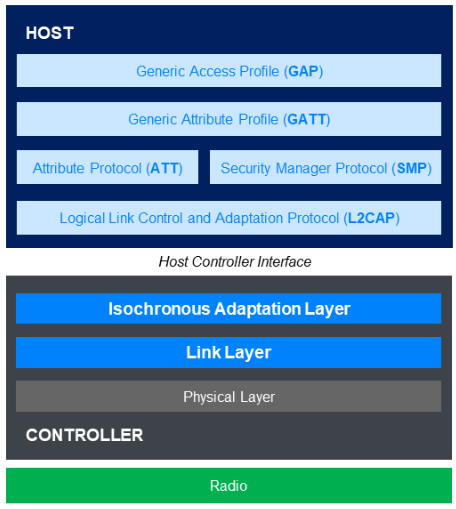 Le protocole BLE est très différent du protocole Bluetooth. Avec Bluetooth, il était concevable d’établir un petit réseau. Avec BLE, il est possible d’utiliser les communications point à multipoints, diffusion (Broadcast) et mesh. Un support IPv6 est aussi évoqué.