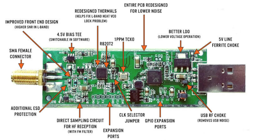 D’autres matériels existent, comme les clefs TNT RTL2832 (figure 28.2) qui permettent de recevoir n’importe quel signal (ou presque) de moins de 2GHz et de réaliser la démodulation en logiciel à l’aide de GnuRadio.