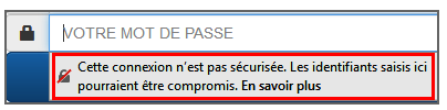 Les données circulent en clair, elles peuvent donc être interceptées. Un malfrat peut ainsi récupérer les mots de passe. Firefox rale en affichant quelque chose similaire à la figure 17.4.