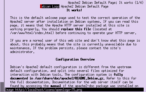 4. Lancer la commande elinks http://localhost/ vous devez avoir une page par défaut (figure 17.1) ;