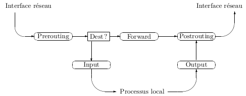 Si le paquet est émis depuis le firewall, alors, c’est la chaîne OUTPUT qui sera évaluée.