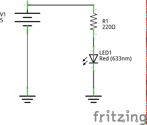 Le montage le plus simple consiste à allumer une diode à partir d’une sortie numérique. Les caractéristiques simplifiées des diodes sont :