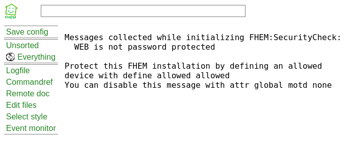 Ensuite, le serveur est installé. Il est accessible par http sur le port 8083 (figure 5.7 et sur telnet, port 7072. Pour activer la connexion telnet, il faut ajouter la ligne suivante dans le fichier fhem.cfg.