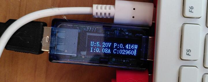 Il est possible de mesurer la sortie USB, comme dans la figure 5.13. Cette figure montre la consommation d’un M5Stack, avec écran allumé, sur un Raspberry 400.