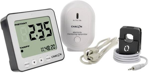 Pour mesurer la consommation et la remonter dans le système d’information, il est possible de mesurer la tension produite par une pince ampèremètrique. Des équipements grand public font cela, voir la figure 5.6. Ce kit est composé d’une pince, d’un émetteur et d’un récepteur pouvant afficher les données. Le protocole de transmission n’est pas documenté, mais des solutions existent pour récupérer les valeurs transmises. Prix 50€.